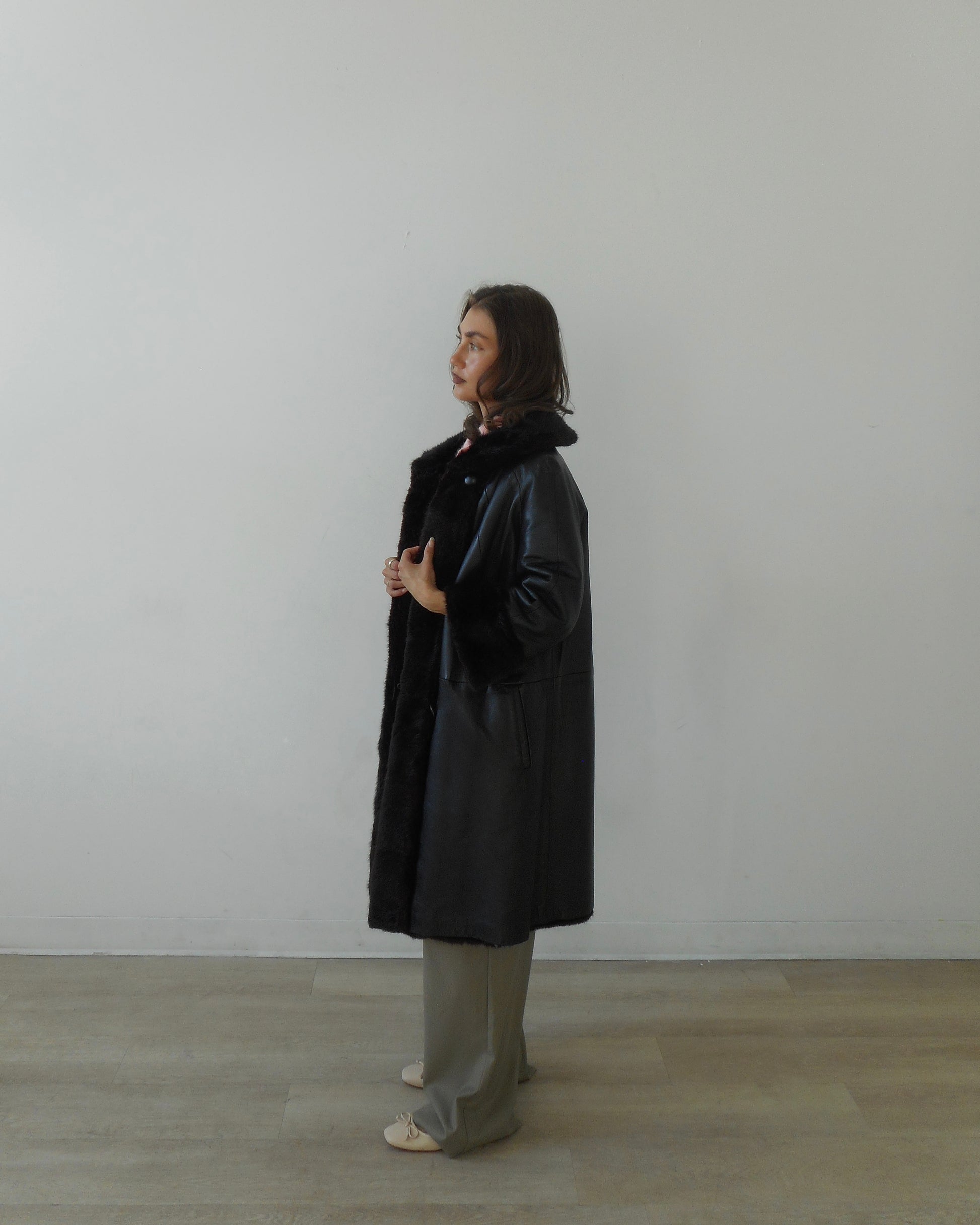 Vintage reversible burgundy mink coat in good condition, offering two distinct looks in one classic piece.